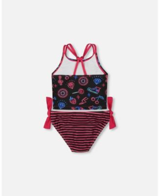 Girl Printed Long Sleeve One-Piece Rashguard Black And Blue And Pink Items - Toddler|Child
