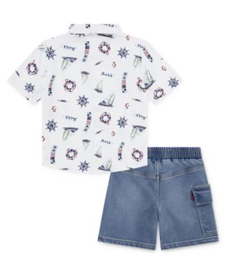 Little Boys Sailing Shirt and Denim Cargo Shorts Set