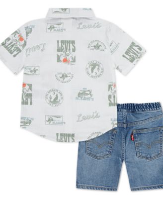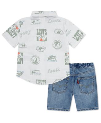 Toddler Boys 2-Piece Printed Shirt and Denim Shorts