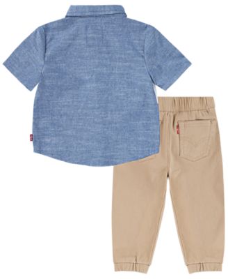 Little Boys 2-Piece Woven Shirt and Cargo Shorts