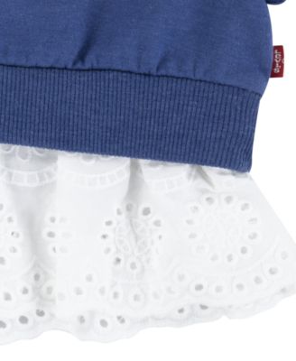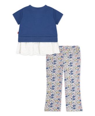 Levi’s® Baby Girls 2-Pc. Flutter-Sleeve Top & Jean Shorts Set