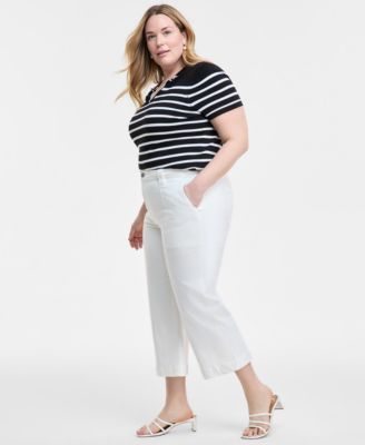 Women's Striped Cotton Crewneck Twist-Front Sleeveless Top, PXS-3X