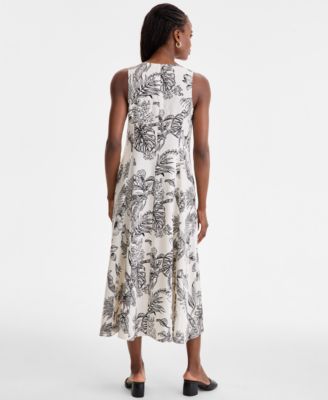 Plus Size 3/4-Sleeve Tab-Waist Fit & Flare Dress