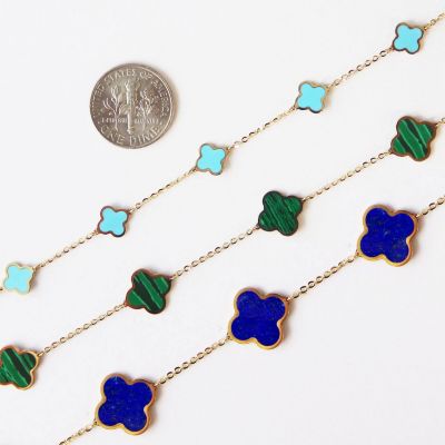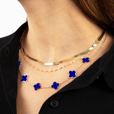 Large Lapis Clover Necklace 14K Gold