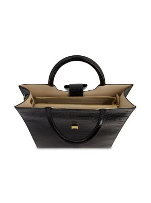 Crocodile Leather Buckle Detail Medium Tote Bag
