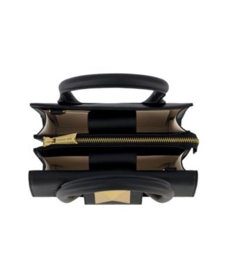 Gold Hardware Detail Angular Top Handle Small Leather Handbag
