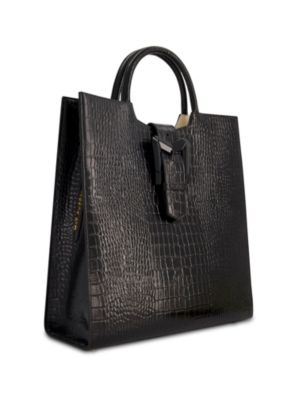 Crocodile Leather Buckle Detail Maxi Tote Bag