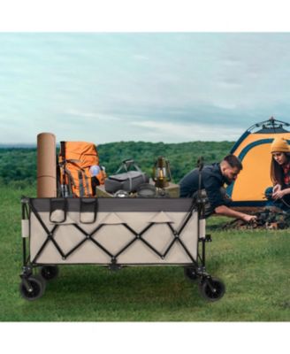 Heavy-Duty Foldable Utility Wagon - 480lbs, All-Terrain, Khaki-Gray