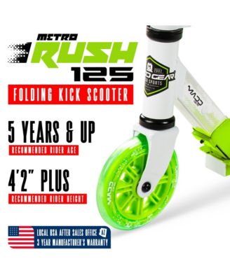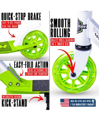 Folding Kick Scooter with Lights - Rush 125 - White Green