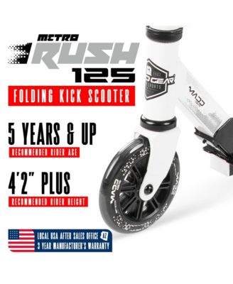 Folding Kick Scooter with Lights - Rush 125 - White Black