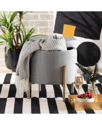 Malina Contemporary Glam and Luxe Pink Velvet Fabric Upholstered and Gold Finished Metal Storage Ottoman