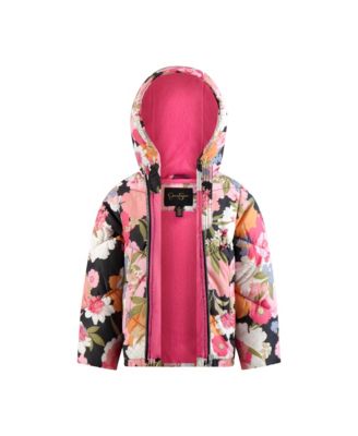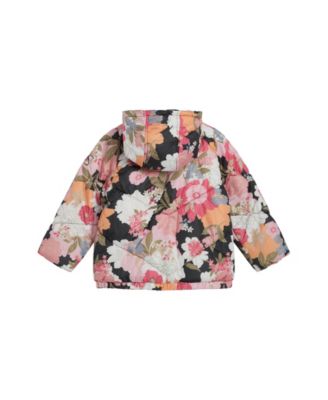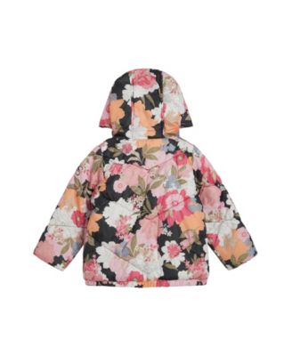 Toddler and Little Girls Flocked Floral Puffer Jacket