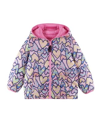 Toddler Girls Toddler/Child Pink Heart Printed Reversible Puffer Jacket