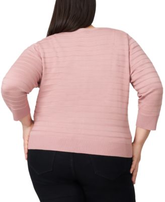 Plus Size Pointelle-Yoke 3/4-Sleeve Sweater