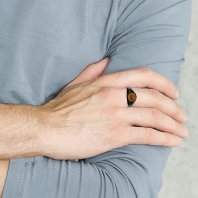 Stainless Steel, Black Plated Inlay Round Ring - Tiger Eye