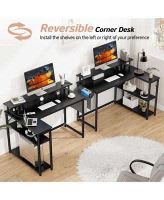 L-Shaped Desk 50.8" Computer Corner Desk, Home Gaming Desk, Office Writing Workstation with Large Monitor Stand, Space-Saving, Easy to Assemble, Black