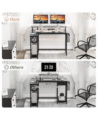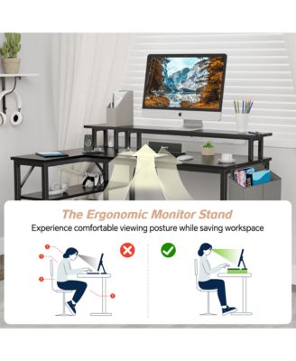 L-Shaped Desk with Power Outlets & Monitor Stand, 47 inch, Rustic Brown
