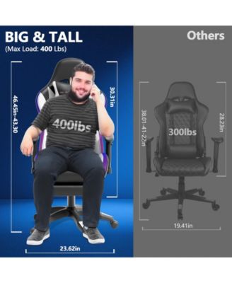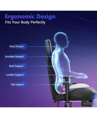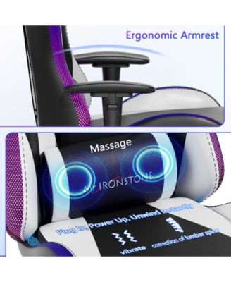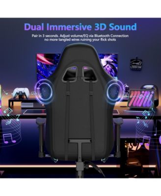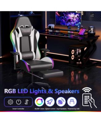 Gaming Chair with Speakers and Led Lights Ergonomic Massage Computer Gaming Chair with Broaden Cusion and Footrest High Back Video Game Chair for Adults Kids Boyfriend Father's Gift, Blue Black and Pink