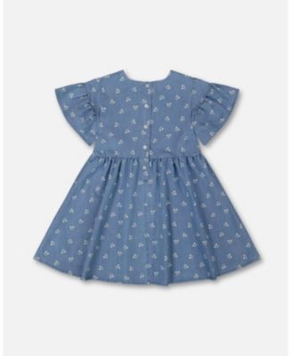Girl Printed Beach Dress Yellow, Pink Flowers On Navy Blue Background - Toddler|Child