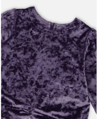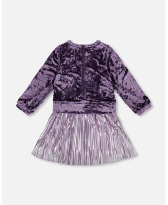 Toddler Girls Long Sleeve Bi-Material Velour and Jersey Dress Purple Gray - Toddler|Child