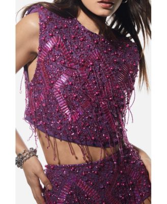 Women's Embellished Tassel Beaded Crop Top