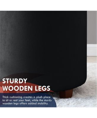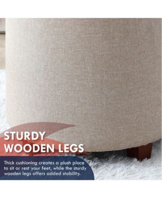 Faux Leather Round Storage Ottoman with Legs and Lift Off Lid