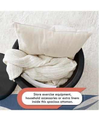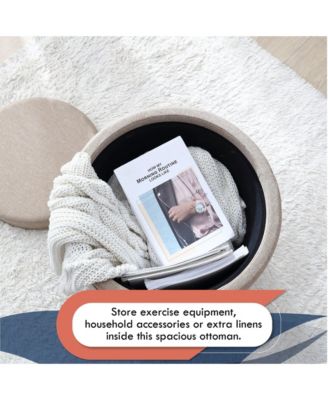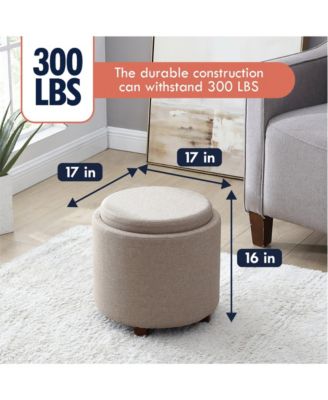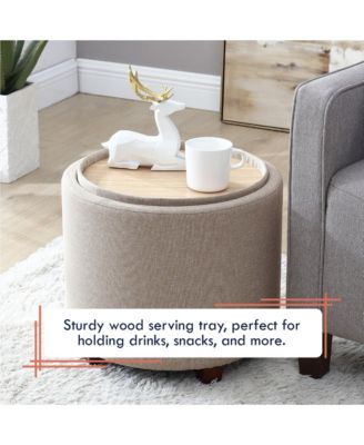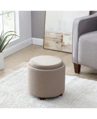 Lawrence Round Linen Storage Ottoman with Table Top Lid