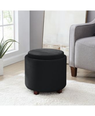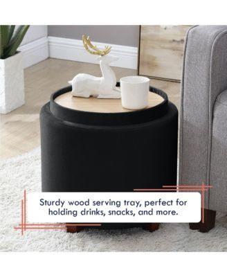 Lawrence Round Velvet Storage Ottoman with Table Top Lid