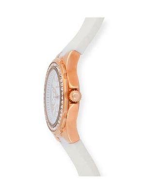 Women's Rose Gold Wrist Watch with Crystal Bezel and Silicone Rubber Band