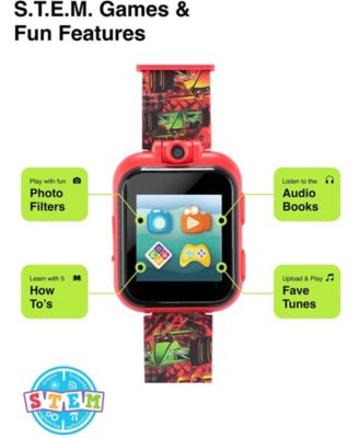 4 Kids Red and Black Print Leather Silicone Strap Smartwatch, 49mm