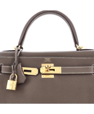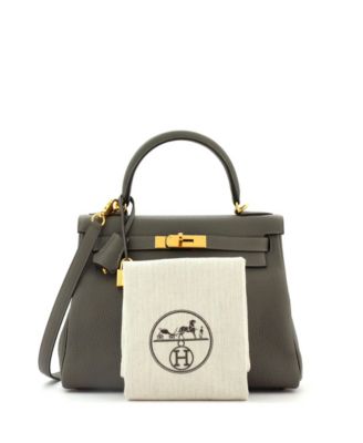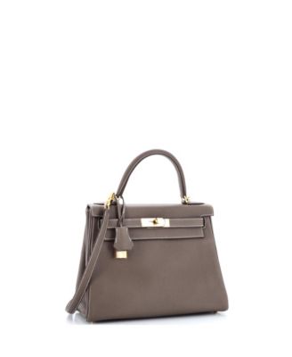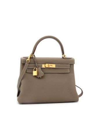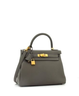 Pre-Owned Hermes Kelly 28 Handbag Grey Togo with Gold Hardware