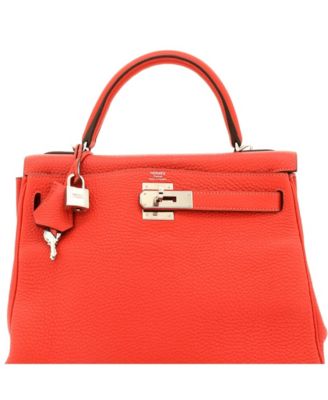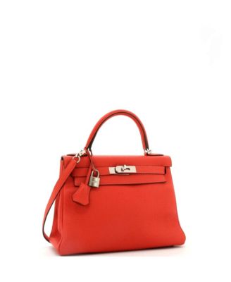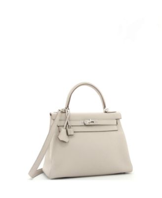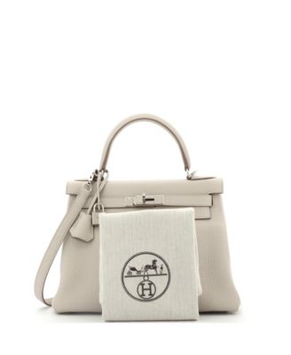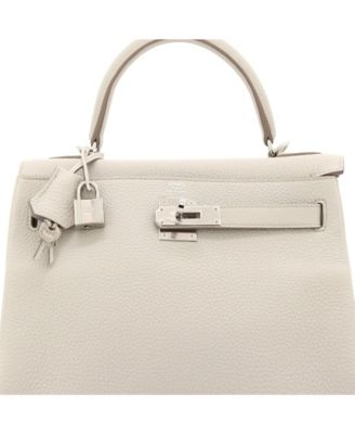 Pre-Owned Hermes Kelly 28 Handbag Light Clemence with Palladium Hardware