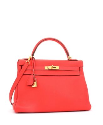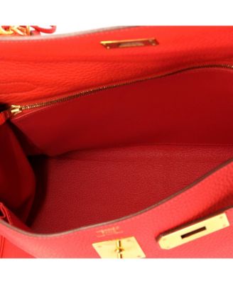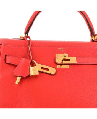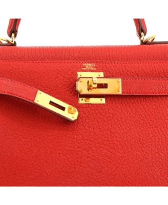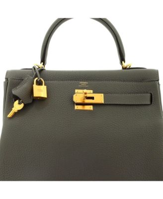 Pre-Owned Hermes Kelly 28 Handbag Green Togo with Gold Hardware