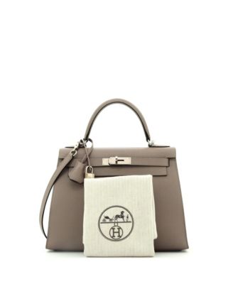 Pre-Owned Hermes Kelly 28 Handbag Grey Epsom with Palladium Hardware