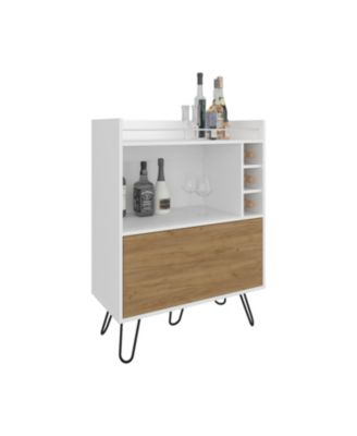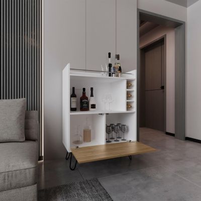 Topton Bar Cabinet, 1 Door, 4 Shelves, White / Natural Oak