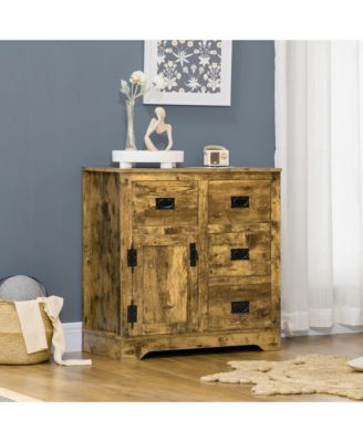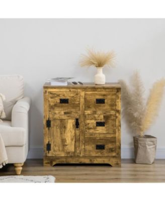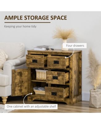 Industrial Sideboard Buffet Cabinet, Kitchen Cabinet with 4 Drawers, 1 Door, Adjustable Shelf Coffee Bar Cabinet, Rustic Brown