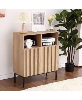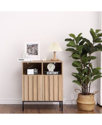 Wood Fluted Buffet Cabinet with Adjustable Shelves