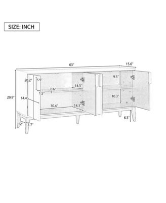 Modern Sideboards, Buffet Cabinet with 4 Doors and Adjustable Shelves
