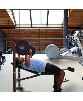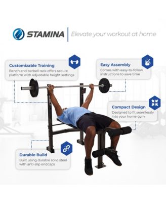 Stamina Adjustable Steel Weights Bench and Barbell Rack Combo Set with Resistance Band Anchor Points for Home Gym Workout or Exercise, Black