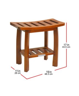 21'' Teak Wood Shower Bench 2-Tier Waterproof Bath Spa Stool