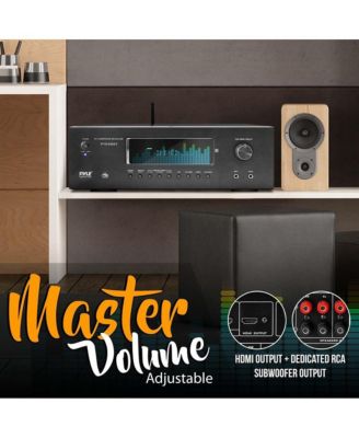 Compact Wireless Bluetooth Stereo Amplifier - Optical/Phono/Coaxial/FM Radio/Microphones/USB & SD Memory Card Readers, HDMI Inputs/Outputs with Digital LCD Display (200W