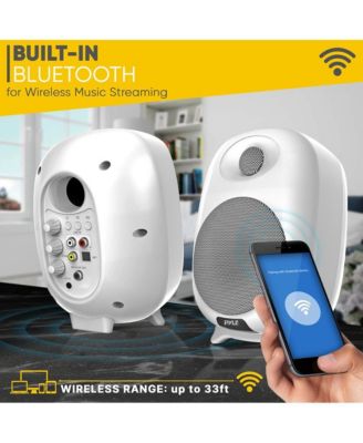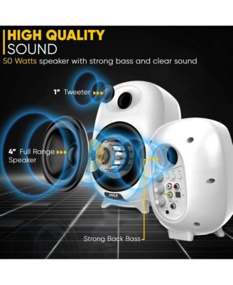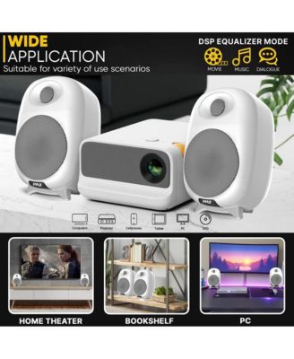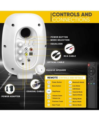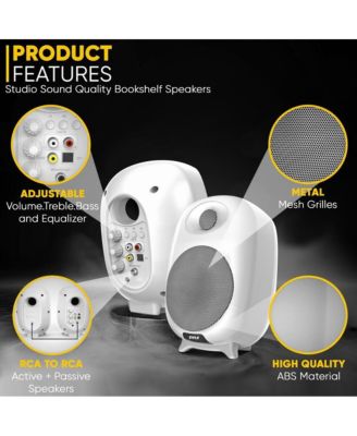 Hi-Fi Home Bookshelf Monitor Speakers, Bluetooth Desktop Stereo System with Remote Control, 60W MAX, White