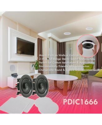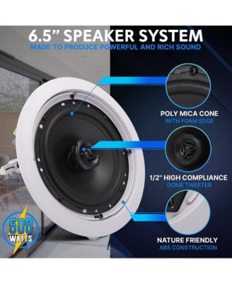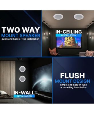 6.5'' In-Wall/In-Ceiling Speaker Pair – 2-Way Midbass System, 1” Titanium Tweeter, Flush Mount, 250W Peak