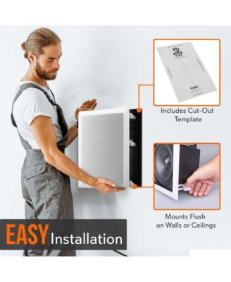 10.0" In-Wall / In-Ceiling Dual Stereo Speakers - 2-Way Flush Mount with Built-in Crossover Network, 250W Max Power Output