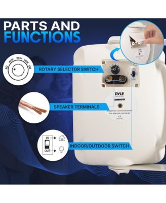 70V On Wall/Patio Commercial Speaker - 2-Way Full Range Stereo Sound, Waterproof Enclosure with 70V Built-in Transformer (White)
