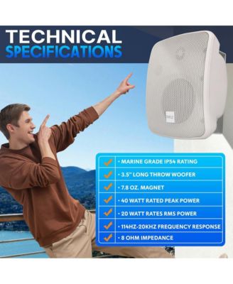 3.5” 2-Way Indoor/Outdoor Speaker System - Waterproof Design with 1/2” High Compliance Polymer Tweeter
