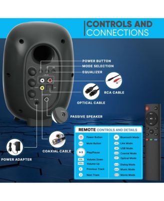 Hi-Fi Bluetooth Desktop Bookshelf Speakers with Remote Control and Optical Cable (60W)