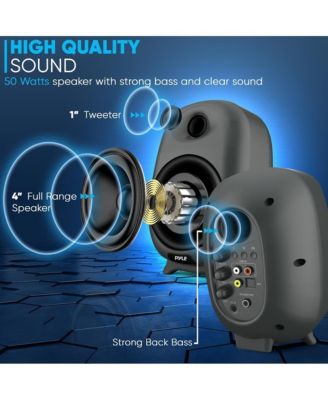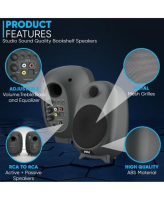 Hi-Fi Home Bookshelf Monitor Speakers, Bluetooth Desktop Studio System with Remote Control, 60W MAX