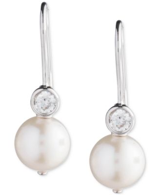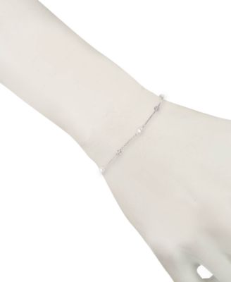 Sterling Silver Cubic Zirconia & Freshwater Pearl Station Bracelet