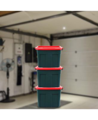 Roughneck 18 Gal Plastic Holiday Storage Tote, Green and Red (6 Pack)